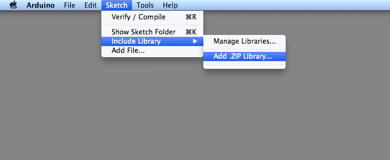 Return to the Sketch > Include Library menu. menu. You should now see the library at the bottom of the drop-down menu. It is ready to be used in your sketch. The zip file will have been expanded in the libraries folder in your Arduino sketches directory.