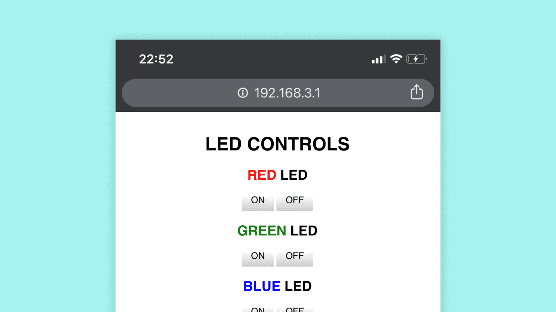In this tutorial you will configure the Portenta H7 as an access point and build a simple web server that will allow you to control the built-in RGB LEDs from your mobile device.