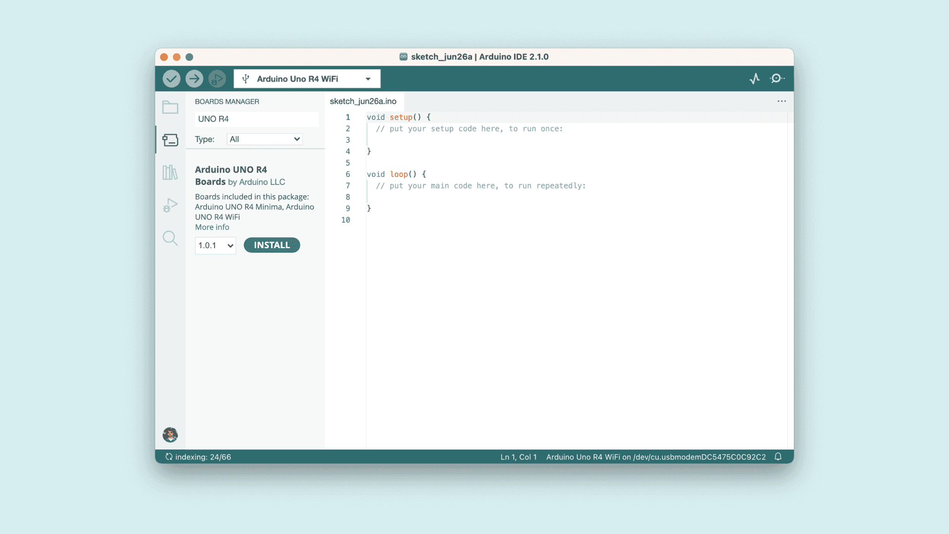 Congratulations, you have now successfully installed the UNO R4 WiFi board package via the Arduino IDE.
